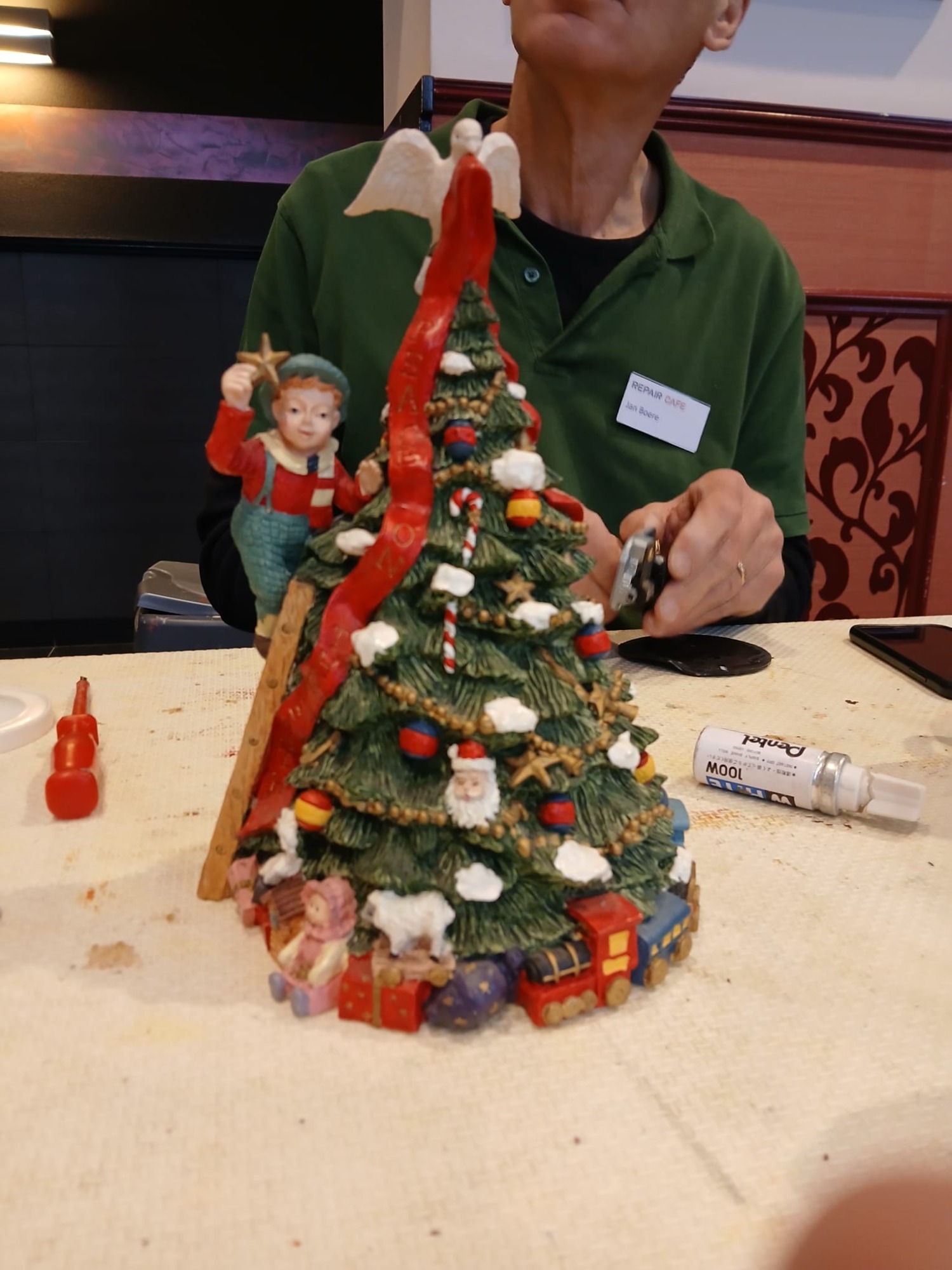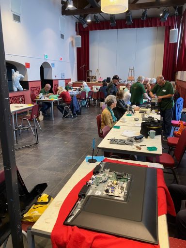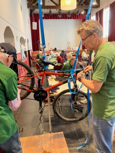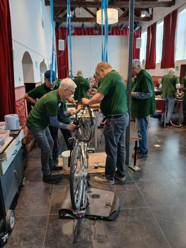 Vrijwilligers vol enthousiasme aan het werk op de reparatiedag.