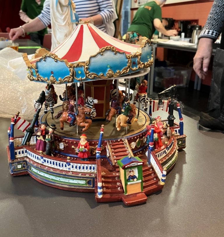 Dezelfde eigenaresse had ook een draaimolen meegenomen waarvan de verlichting deels niet meer werkte. Helaas bleek de printplaat onherstelbaar, maar de vrijwilligers lieten zich niet kennen. Ze zorgden er wel voor dat de kleine kabouterkinderen die op de draaimolen hingen weer stevig vastzaten.